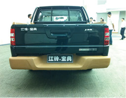 ??????? 2009年雙塔公司采納子公司泉州全順(江鈴4S店)經(jīng)營期間收集客戶使用保險杠反饋信息(磕碰后易變形、左右塑料件磕碰易脫落),結合雙塔現(xiàn)有極限深沖壓拉伸工藝,歷時13個月市場調(diào)研、新產(chǎn)品開發(fā)設計、攻克技術工藝上難題,自主研發(fā)新款一體成型皮卡車后保險杠。